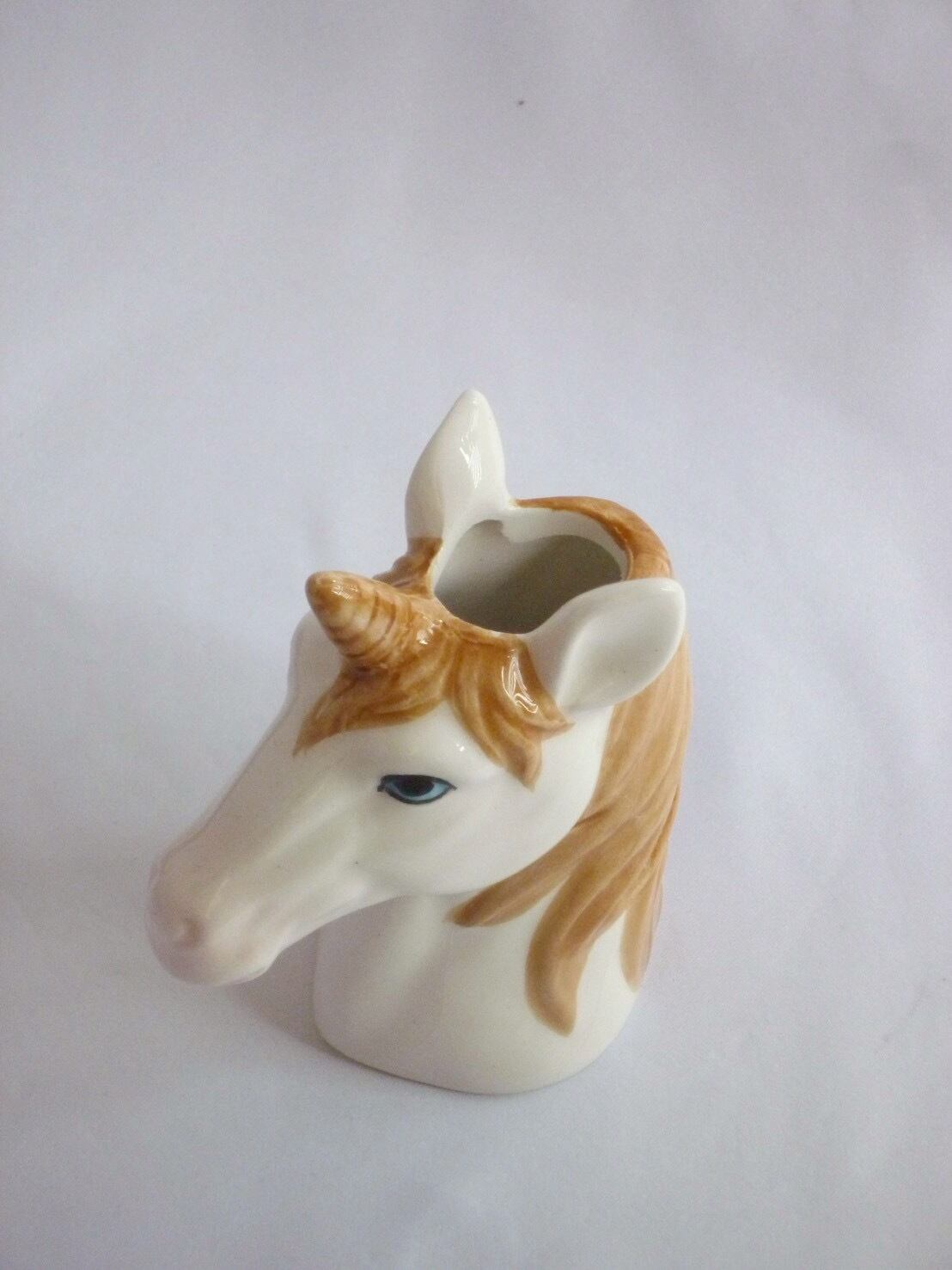 ユニコーンの頭部をモチーフにしたユニークなデザインの花瓶です